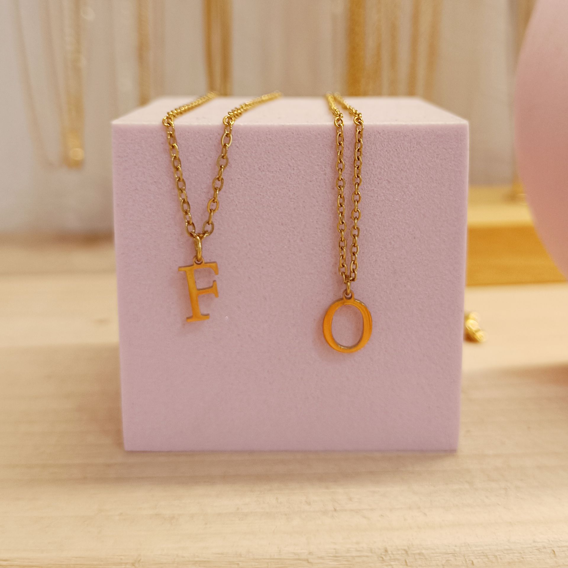 Collar Inicial Dorada Brillo Letra "O"